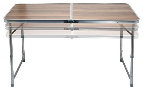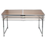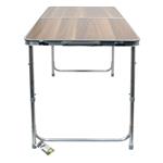 Stôl Double je skladací, teleskopický stôl z Aluminia, s rovnou plochou a vzorom kvalitne imitujúcim drevo.