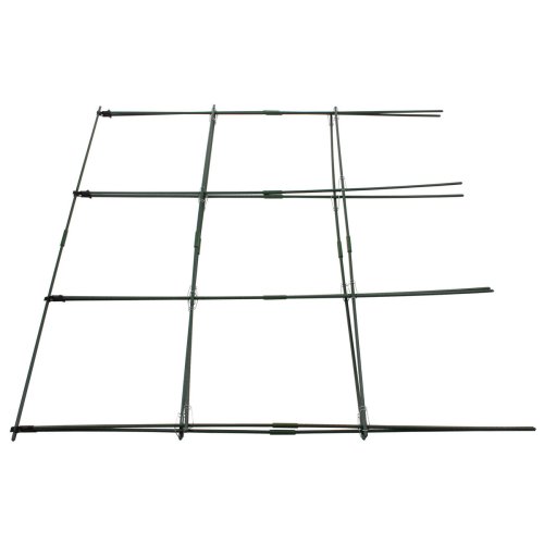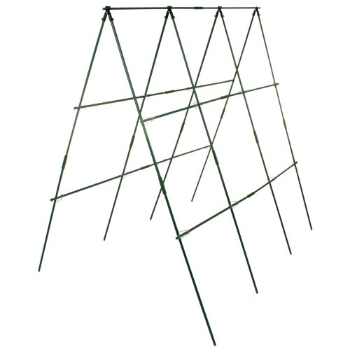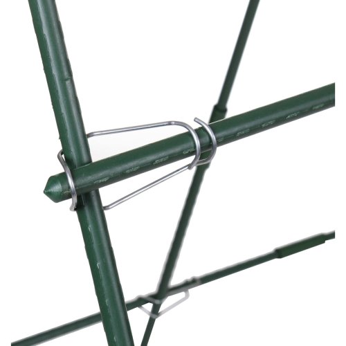 Praktická konštrukcia Merco CCS1515 z odolných poplastovaných oceľových tyčiek s priemerom 11 mm poskytuje oporu pre vysoké okrasné alebo úžitkové popínavé rastliny a prispieva tak k ich vzpriamenému rastu. Konštrukciu ľahko zapichnete do zeme a umiestnite do záhona. Dĺžka konštrukcie je 150 cm, rovnako ako dĺžka samostatných tyčiek. Šírka a výška konštrukcie je variabilná a prispôsobí sa tak každému záhonu. Záleží len na tom, ako veľmi stojan do šírky roztiahnete. Zloženie konštrukcie z jednotlivých komponentov je jednoduché a zaberie vám iba pár minút. Vďaka zelenej farbe stojan skvele splynie s okolitým prostredí m. So stojanom Merco CCS1515 si pestovanie popínavých rastlín užijete v pokoji a pohode. Obsah balenia: - 26 x tyčka s dĺžkou 75 cm, priemer 11 mm - 13 x rúrková spojka tyčiek, dĺžka 7 cm, priemer 15 mm - 4 x horná dvojitá plastová spojka s možnosťou roztiahnutia na požadovanú šírku - 16 x kovová spona na uchytenie bočných tyčí ku konštrukcii - Materiál: (spony) - váha balenia: cca 1,7 kg - rozmer balenia: 76 x 13 x 6 cm Parametre konštrukcie: - dĺžka konštrukcie: 150 cm - dĺžka zložených tyčiek: 150 cm - výška konštrukcie: variabilná (cca 120 - 150 cm) - šírka konštrukcie: variabilná (cca 70. dĺžke 75 cm spojte rúrkovou zelenou spojkou k sebe, k zemi pritom smeruje špicatý hrot. 2. Vytvorte z 8 dlhých tyčí 4 páry a to ich spojením čiernou roztváracou spojkou. 3. Nacvaknite hornú vodorovnú dlhú tyčku do očiek v čiernych spojkách na vrchole spojených párov zvislých tyčiek. Konštrukciu roztvorte do tvaru A a postavte ju na zem. 4. Pripevnite ku konštrukcii štyri vodorovné tyče pomocou kovových spôn a to v mieste ich kríženia so zvislými tyčkami. 5. Roztiahnite hotovú konštrukciu na požadovanú šírku a zapichnite ju pevne do záhona.