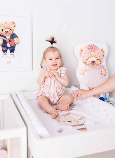 DÔLEŽITÉ. UCHOVAJTE PRE BUDÚCNOSŤ PREČÍTAJTE POZORNE VAROVANIE: NENECHÁVAJTE DIEŤA BEZ DOZORU Mali by sme si uvedomiť všetky riziká, ktoré sú s používaním otvoreného ohňa a iných zdrojov tepla, ako sú elektrické sporáky, plynové sporáky atď. v blízkosti prebaľovacej podložky spojená. Prebaľovacia podložka je určená pre deti vo veku 0-12 mesiacov (max. 11 kg). Pokiaľ zistíte akékoľvek poškodenie, prestaňte podložku používať. Na údržbu a čistenie používajte iba vodu. Nepoužívajte na čistenie vlhčené obrúsky pre deti, detské oleje, telové mlieka všetkých značiek, čistiace prostriedky, kefy a iné čistiace a konzervačné prostriedky. Vlhčené obrúsky pre deti, mlieka, oleje, čistiace prostriedky a pod. prispievajú k poškodeniu povrchovej vrstvy výrobku. Prebaľovacia podložka je určená na umiestnenie na detskú postieľku. Je určená pre každodennú starostlivosť o dojčatá. Akékoľvek zmeny farby tlače vyplývajú z prirodzeného opotrebovania výrobku. POZOR! Zabezpečovacie nohy proti pošmyknutiu by mali byť riadne pripevnené a pravidelne kontrolované. Akékoľvek príslušenstvo alebo náhradné diely získavajte iba od výrobcu, distribútora alebo predajcu. Prestaňte podložku používať, ak akýkoľvek diel je zlomený, roztrhaný alebo chýba.