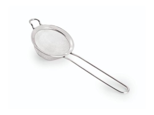 Jemný sitko s rukoväťou a očkom dobre drží na hrnci či hrnčeku.