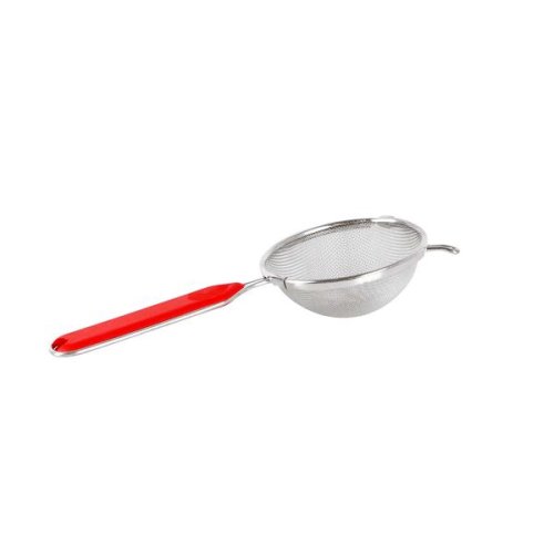 Cedník je vyrobený z jemného kovového tkaniva s okami 1 x 1 mm. Tkanivo je pevne spojené s oceľovou obrubou a držadlom z oceľového drôtu, ktorý je vyplnený plastovou vložkou s otvorom na zavesenie. Rozmery cedníka -22 x 10 x 3, 5 cm