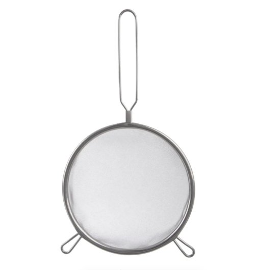Cedník s veľmi jemným sitkom (oká 0.45 x 0.45 mm), s rukoväťou a očkom dobre drží na hrnčeku. Priemer 20 cm, dĺžka 34.5 cm. Nerezová oceľ. Vhodné do umývačky riadu. EAN 8592381227050