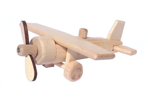 Drevený model lietadla je vyrobený z vysoko kvalitného bukového dreva. Jeho povrch je iba voskovaný a leštený, nie je nijako chemicky upravovaný či farbený, aby bol zachovaný prírodný vzhľad. Drevenému lietadlu sa točia vrtule aj kolieska a nemá žiadne ostré hrany. Je vhodné aj na pieskovisko. Hlavné vlastnosti: precízne spracovanie bukového dreva zaoblené hrany pohyblivé prvky modelu