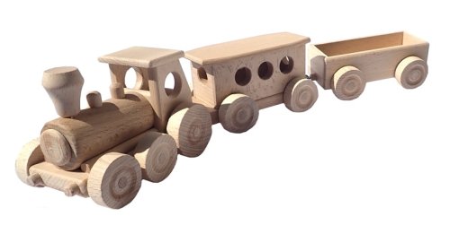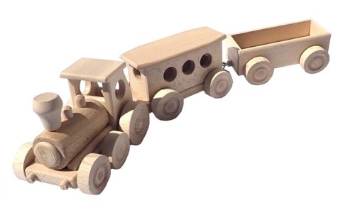 Drevený model vláčika je vyrobený z vysoko kvalitného bukového dreva. Jeho povrch je iba voskovaný a leštený, nie je nijako chemicky upravovaný či farbený, aby bol zachovaný prírodný vzhľad. Drevenému vláčiku sa točia kolieska a nemá žiadne ostré hrany. Je vhodné aj na pieskovisko. Hlavné vlastnosti: Precízne spracovanie bukového dreva Zaoblené hrany Pohyblivé prvky modelu