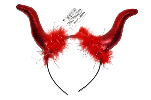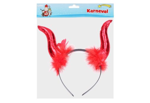 Čelenka čertovy rohy s perovou aplikáciou.