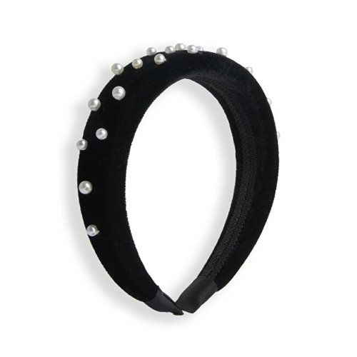 Čelenka z čierneho zamatu s bielymi perličkami je dokonalým spôsobom, ako okoreniť každý váš účes.