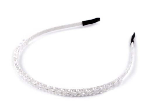 Čelenka s brúsenými korálkami je veľmi slušivá a elegantná. Hodí sa ako doplnok do vlasov pre nevesty a družičky, ale aj na slávnostnú príležitosť ako sú krstiny, narodeniny, rôzne party, plesy, koncerty a večierky. Kovový základ široký 0,5 cm je ovinutý monofilovou stuhou. Na ňom sú pripevnené sklenené korálky s pútavým leskom.