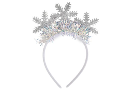Čelenka s trblietavými vločkami je pôsobivým doplnkom na vianočné večierky, zábavu, karneval, rodinné stretnutia, školské predstavenia alebo na Silvestra. Skvele sa hodí aj do fotokútiku. Vločky sú na pružinke az prednej strany majú glitre. Ďalej čelenku zdobia lesklé lamety. Výška vločiek pri variante č. 1 je 7 cm. Výška vločiek pri variante č. 2 je 11 cm.
