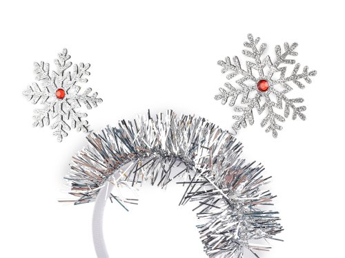Čelenka s trblietavými vločkami je pôsobivým doplnkom na vianočné večierky, zábavu, karneval, rodinné stretnutia, školské predstavenia alebo na Silvestra. Skvele sa hodí aj do fotokútiku. Vločky sú na pružinke az prednej strany majú glitre. Ďalej čelenku zdobia lesklé lamety. Výška vločiek pri variante č. 1 je 7 cm. Výška vločiek pri variante č. 2 je 11 cm.