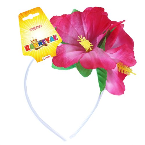 Pôvabná čelenka v štýle Havaj je skvelý doplnok, ktorým ozdobíte vaše vlasy nielen na karnevale. Biela čelenka je zdobená 3 farebnými kvetmi.