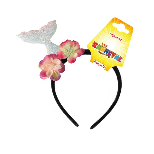 Veselá karnevalová čelenka v štýle morskej víly je zdobená trblietavým rybím chvostom a kvetmi. Ideálny doplnok ku kostýmu alebo len tak na párty!