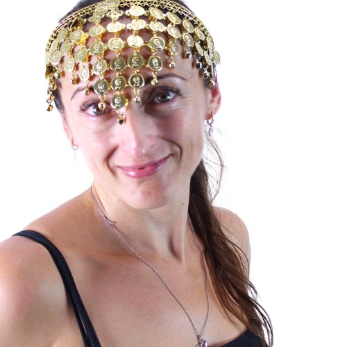 Štýlová čelenka so zlatými peniazmi, vkusne doplní váš karnevalový kostým brušnej tanečnice alebo orientálne dievčatá.