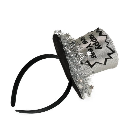 Oslávte príchod nového roka štýlovo s naším strieborným mini klobúkom „Happy New Year“, ktorý je pripevnený na pohodlnej čelenke! Tento elegantný doplnok dodá vášmu outfitu slávnostný šmrnc a zaručene upúta pozornosť na každom silvestrovskom večierku.