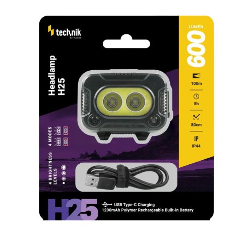 Čelovka nabíjacia Technik Headlamp H25, 600 lm.