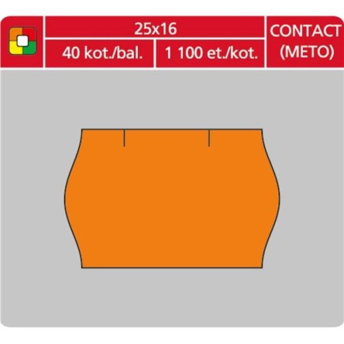 Cenové etikety CONTACT určené na označovanie výrobkov cenou, dátumom (napr. minimálnou trvanlivosťou), prípadne ďalšími doplňujúcimi údajmi Farba: oranžová Predávame po jednom kotúčiku, ktorý obsahuje 1 100 …