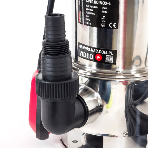 Potrebujete z pivnice, studne alebo kanalizácie odčerpať vodu? Zaobstarajte si ponorné čerpadlo SPE100INOX-L s elektrickým motorom s výkonom 1 000 W . Kvalitné nerezové puzdro odolá aj znečistenej vode. Využijete ho aj pri vypúšťaní bazénov, jazierok alebo nádrží na dažďovú vodu. Dokáže nasať až 20 000 l/ha poradí si s nečistotami do priemeru až 35 mm . Môžete ho ponoriť do hĺbky maximálne 7 metrov.