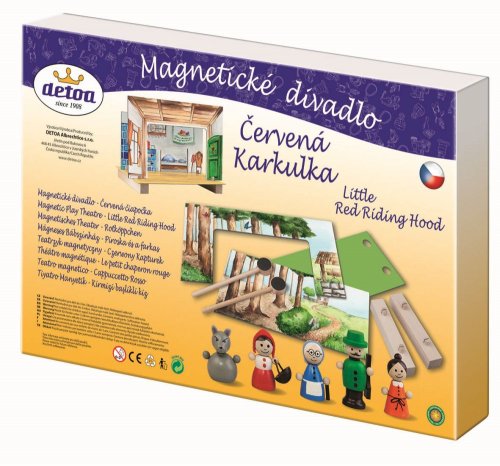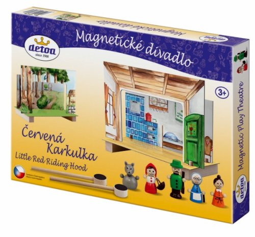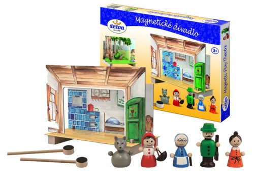 Magnetické divadlo Červená Karkulka je výborná zábava pre malých aj veľkých na motívy obľúbenej rozprávky. Vo figúrkach je vlepený magnet, ktorý sa priťahuje k magnetu vo vodítku.