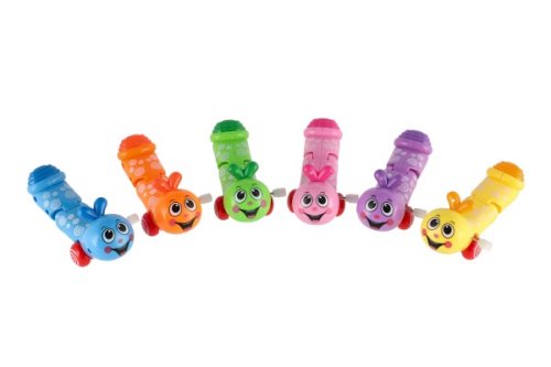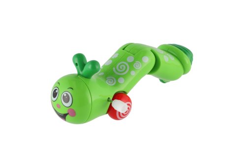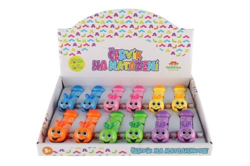 Rozkošní farební červíčkovia, ktorí sa po natiahnutí plazia vpred. Červík sa naťahuje pomocou skrutky umiestnenej na boku hračky. Veľkosť červíčka: 13 cm Vhodné pre deti od 3 rokov
