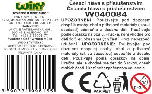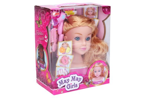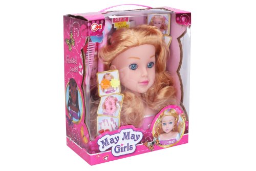 Česacia hlava set. Veľkosť 22 cm. Obsah - hlava, fén, kulma, hrebeň, 2 sponky, gumička.