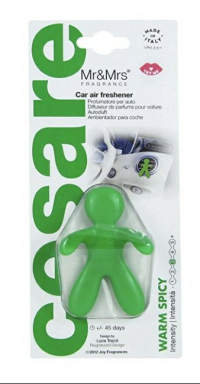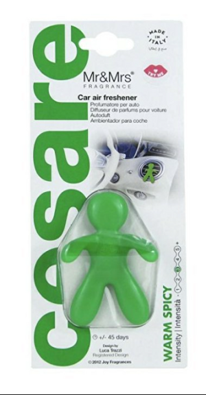 Ikonický panáčik Cesare Warm Spicy Green v sebe spája elegantný dizajn a orientálno-korenistú vôňu, ktorá dokonale oživí interiér vášho vozidla. Osviežujúce tóny ružového grapefruitu, citrónu, mäty a škorice sa prelínajú s jemným srdcom tvoreným bielymi kvetmi, kosatcom, vanilkou a pačuli, zatiaľ čo hrejivý základ s fazuľami tonka, jantárom a pižmom dodáva vôni hĺbku a zmyselnosť. Panáčik sa jednoducho upevní na ventilačnú mriežku, odkiaľ po dobu 1–2 mesiacov rovnomerne uvoľňuje svoju vôňu. Je vyrobený z netoxického polyméru EVA, neobsahuje alkohol ani škodlivé látky a pýši sa certifikátom IFRA, ktorý zaručuje zdravotnú nezávadnosť.