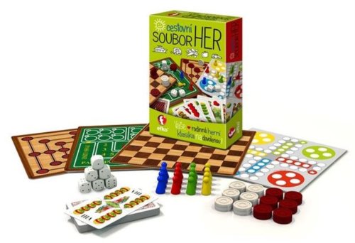 Vaša rodinná herná klasika na dovolenku! Užite si voľné chvíle so súborom najpopulárnejších hier v praktickej krabičke, ktorú oceníte na cestách aj doma. Zahrať si môžete klasické hry, ako sú: Človeče, nehnevaj sa!, Dáma, Mlyn a Craps (napínavá kasíno hra s jednoduchými pravidlami); kartové hry - prší, mariáš a ďalšie s 32 kartami alebo hry v kocky so 6 kockami. Hra od českého výrobcu EFKO. Hra obsahuje: - návod, - 32 kariet, - 24 kameňov, - 16 figúrok, - 2 obojstranné hracie dosky.