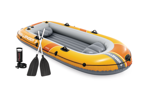 Nafukovací čln Challenger™ 3 je určený pre maximálne tri osoby a predstavuje spoľahlivý a praktický doplnok pre letné vodné aktivity. Čln je vyrobený z pevného, odolného PVC materiálu, ktorý zaisťuje dlhú životnosť a odolnosť proti poškodeniu. Jeho konštrukcia obsahuje tri vzduchové komory, vrátane pomocnej komory umiestnenej vo vnútri hlavného trupu, čo výrazne zvyšuje bezpečnosť pri plavbe. Celkový dizajn je robustný a zároveň komfortný vďaka nafukovacej podlahe s I-nosníkom, ktorá poskytuje stabilitu a pohodlie.
