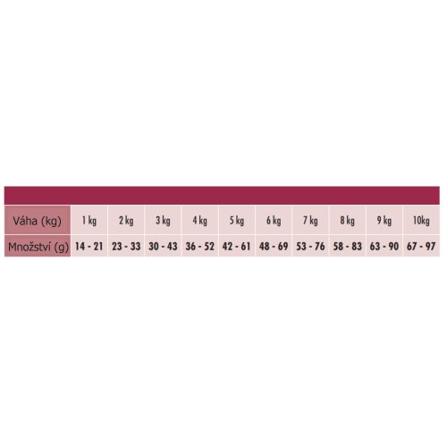 Analytické zložky: hrubý proteín 31,00 %, hrubé vlákna 3,00 %, hrubý tuk 12,00 %, hrubý popol 9,50 %.