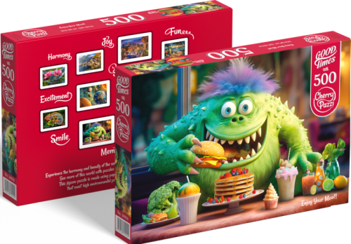 Najprv sa smejete. Potom sa čudujete prečo. Pretože táto zelená príšerka je super roztomilá! Tento hlupáčik má nádherné zelené farby a legrační poletujúce vlasy. Oči sa mu, rovnako ako ľuďom, lesknú od pohľadu na nejaké maškrty. A čo potom, keď sa naň pozriete? Pozrite sa na tie veľké prihlúpené zuby! Skladať puzzle s touto farebnou príšerkou bude skutočná zábava. Všetci sa tešíme, že vám náš malý kamarát zlepší náladu! Rozmer zloženého puzzle cca 50 x 34,5 cm