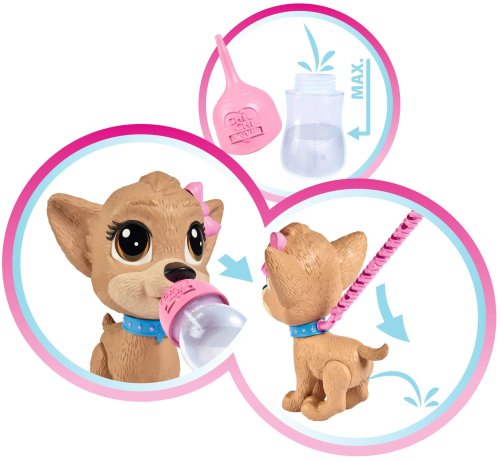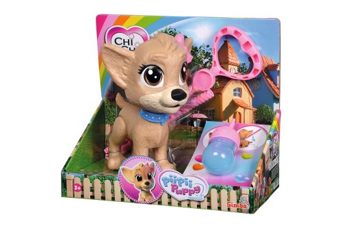 CCL Psík čivava Pii Pii vie robiť lôžka. Dajte psíkovi napiť z fľaštičky a vyrazte na prechádzku. Keď trošku zatlačíte na vodítko, psík pokrčí zadné nohy a urobí kalužku. Balenie obsahuje psíka, vodítko a fľaštičku na pitie. Veľkosť psíka 20 cm.