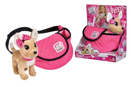 Plyšový psík s trendy taškou cez rameno s nastaviteľnou dĺžkou popruhu. Veľkosť psíka 20 cm.