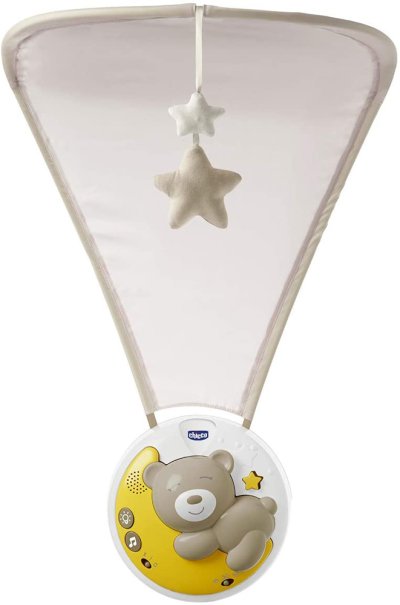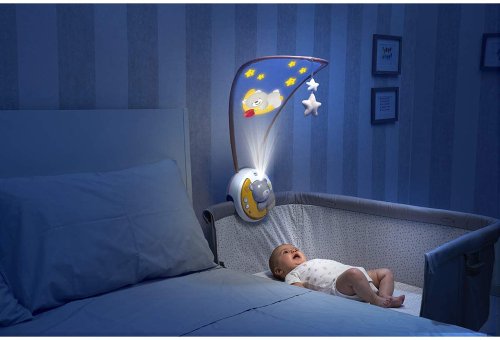 Projektor Chicco Next2Moon je inovatívna hračka nad postieľku slúžiaca na upokojenie a uspanie vášho dieťatka. Kombinuje magickú atmosféru projektora a široké striešky pôsobiace upokojujúcim dojmom na každé malé bábätko, pretože baldachýn simuluje uzavretejšie ochranné prostredie (efekt kokonu, na ktorý je zvyknuté z mamičkinho bruška).