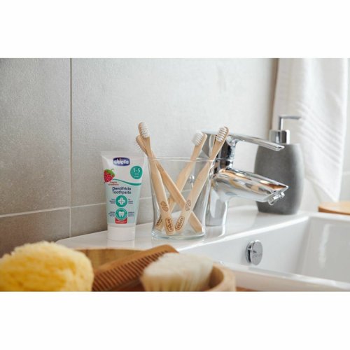 Kompletne vyrobená zo 100% prírodného bambusu, zubná kefka Chicco Bamboo je bezplastovou eko možnosťou čistenia zúbkov a prispievania k čistejšiemu svetu a životnému prostrediu.