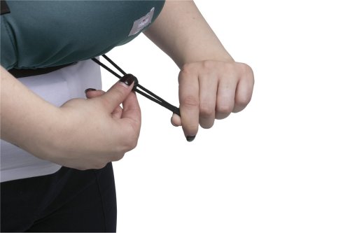 RESPEKTUJE ERGONOMI Vďaka sťahovacej šnúrke v strede je možné šírku sedadla ľahko nastaviť tak, aby sa zaistila správna poloha nôh dieťaťa v tvare písmena "M", čo je nevyhnutné pre správnu ergonómiu a držanie tela dieťaťa.