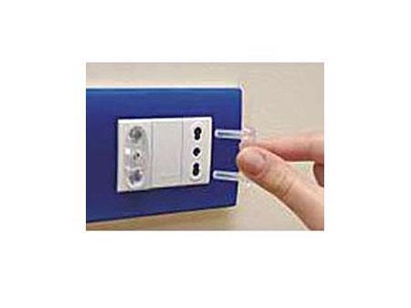 Záslepky ktoré zamedzujú deťom strkanie prstov alebo predmetov do zásuvky. Možno ich vybrať iba pomocou priloženého kľúča.