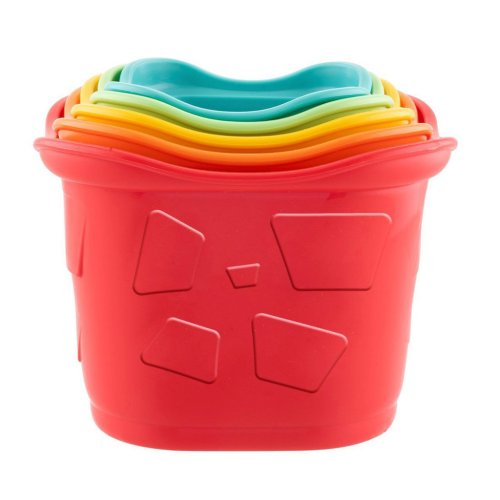 Verzia klasickej pohárovej stohovacej hry 2v1. Triedenie tvarov a skladanie veže z materiálu vyrobeného z recyklovaného plastu.