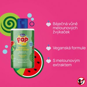 Premení každodenné sprchovanie na hravú a voňavú zážitkovú chvíľu s Chicco POP sprchovým gélom Watermelon splash.