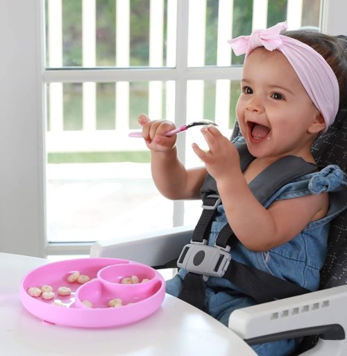 Silikónový tanier z evolučného radu Chicco Take Eat Easy určený na dosiahnutie samostatnosti pri jedení pomáha dieťaťu spoznávať nové chute. Tri rozdelené časti zabraňujú, aby sa rôzne jedlá dotýkali. Tak dieťaťu predstavíme tri rôzne chute.