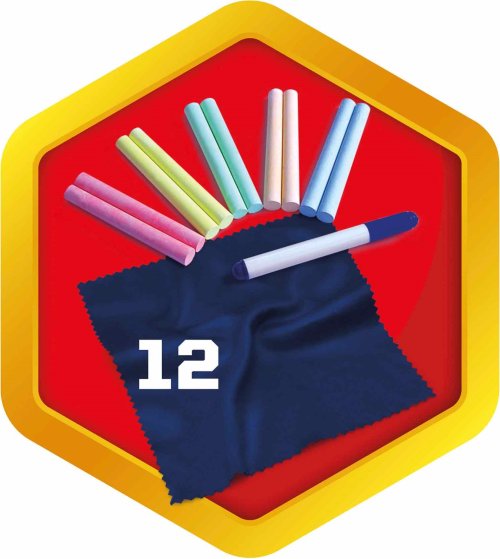 Jedna strana je biela na písanie stierateľnou fixkou a druhá čierna pre klasické kriedy . Balenie obsahuje krabičku s 10 kriedami, 1 vymazateľnú čiernu fixu a mazaciu handričku. Polička pod tabuľou slúži ako odkladacia plocha pre kresliace pomôcky a zároveň zachytáva odpadávajúce čiastočky kriedy pri kreslení. Rozmery tabule po zložení: 37 x 32,5 x 98 cm