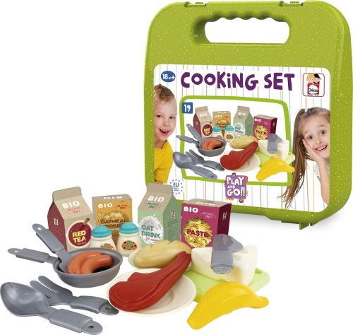 Plastový kufrík pre kuchára alebo kuchárku je plný nevyhnutných potrieb a pomôcok na prípravu jedál. Sada obsahuje: 19 ks (panvica, taniere, príbor, jedlo a ďalšie). Hry na profesie nikdy neomrzia a navyše v dieťati podporujú starostlivosť a starostlivosť o ostatných.