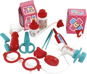 Plastový kufrík pre lekára či lekárku je plný potrebných potrieb a pomôcok na vyšetrenie každého pacienta. Sada obsahuje: 12 ks (stetoskop, injekčná striekačka, teplomer, pinzeta, masť, nožnice a ďalšie). Hry na profesie nikdy neomrzia a navyše v dieťati podporujú starostlivosť a starostlivosť o ostatných.