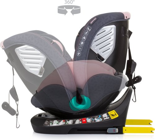 intuitívna a pohodlná inštalácia pomocou systému ISOFIX = rýchly spôsob inštalácie detskej autosedačky - systém Isofix znižuje sily pôsobiace na dieťa v prípade náhleho zbrzdenia vozidla, inštalácia po aj proti smeru jazdy (autosedačku je možné používať proti smeru jazdy pre deti s výškou 40-105 cm, vek 0-4 roky, vážiaci menej ako 18kg), 360 ° otočenie na plastovej základni, 5 bodové bezpečnostné pásy s ochranným polstrovaním, dĺžkovo nastaviteľné, nastaviteľné operadlo do 5 polôh, nastavenie výšky opierky hlavy, vynikajúca ochrana proti bočnému nárazu, polstrovanie pre podporu hlavičky a telá dieťaťa, prídavný 3D vankúš pre zníženie tlaku na pás a chrbát dieťaťa, príjemný poťah - možno sňať a vyprať, využitie autosedačky pre menšie aj väčšie deti.