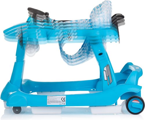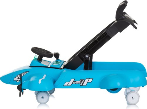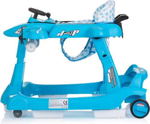 vhodné pre deti od 6 mesiacov s hmotnosťou do 12 kg, hornú časť je možné oddeliť a premeniť na tlačiacu hračku - lietadlo, zábavný hrací panel s hračkami a hudbou, vyrobené z kvalitného a bezpečného plastu, široká základňa pre lepšiu stabilitu, 3 úrovne výšky sedátka pre prispôsobenie rastu dieťaťa, inovatívne regulácia rýchlosti a kolies proti prevráteniu a pádu zo schodov, 4 kolieska (predné otočné o 360 °), jednoduché skladanie a kompaktné skladovanie, jednoduchá montáž, napájanie: 2× AA,1,5V batérie (nie sú súčasťou balenia), vyrobené v súlade s európskou normou EN 1273.