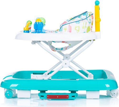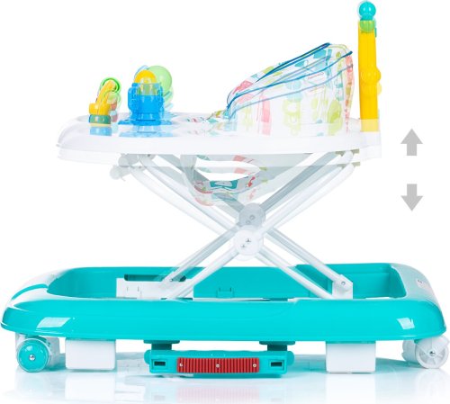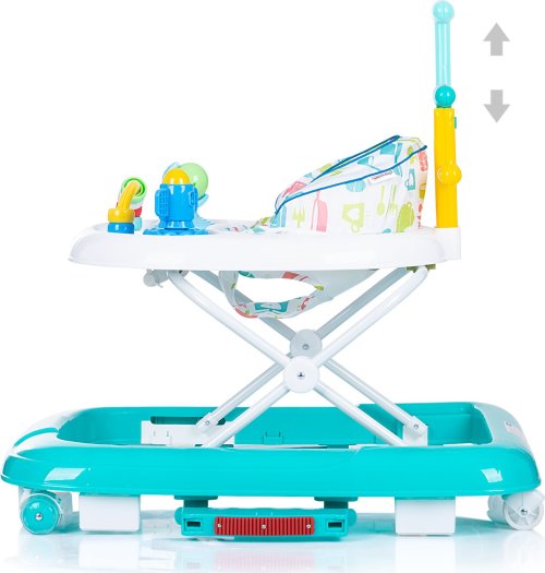 4v1 = chodítko, hojdačka, postrkovacia hračka, možnosť tlačenia dospelou osobou široká základňa pre lepšiu stabilitu 3 výškové polohy sedátka, ktoré zodpovedajú výške dieťaťa 6 zarážok zabraňujúcich prevráteniu alebo pádu zo schodov 4ks koliesok - predné kolieska sa otáčajú o 360 stupňov pultík sa skladá a skladuje jednoduchá montáž