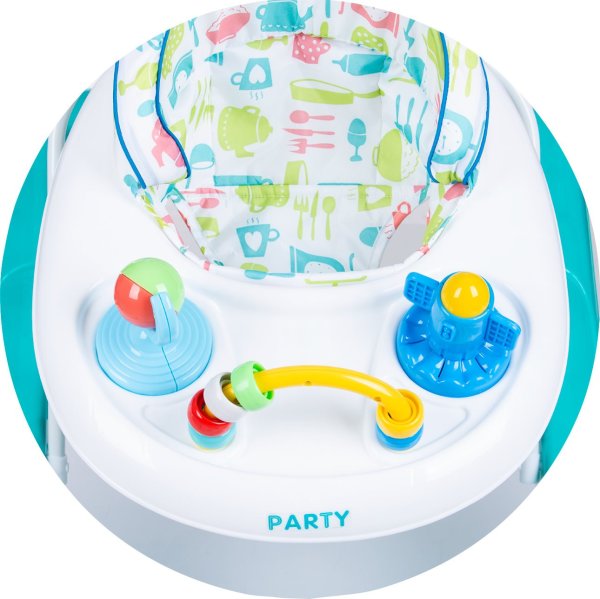 Multifunkčné chodítko je vhodné pre deti s hmotnosťou do 12 kg, ktoré ešte nevedia samé chodiť, ale vedia samostatne sedieť. Chodítko 4v1 Party podporuje pokusy dieťaťa o prvé krôčiky a zlepšuje jeho rovnováhu a koordináciu. Farby a zvuky na pultíku podnecujú kreativitu dieťaťa a rozvíjajú jeho sluchové a zrakové schopnosti.