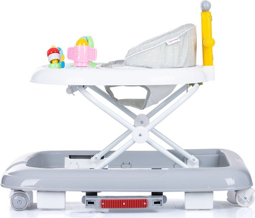 4v1 = chodítko, hojdačka, postrkovacia hračka, možnosť tlačenia dospelou osobou široká základňa pre lepšiu stabilitu 3 výškové polohy sedátka, ktoré zodpovedajú výške dieťaťa 6 zarážok zabraňujúcich prevráteniu alebo pádu zo schodov 4ks koliesok - predné kolieska sa otáčajú o 360 stupňov pultík sa skladá a skladuje jednoduchá montáž