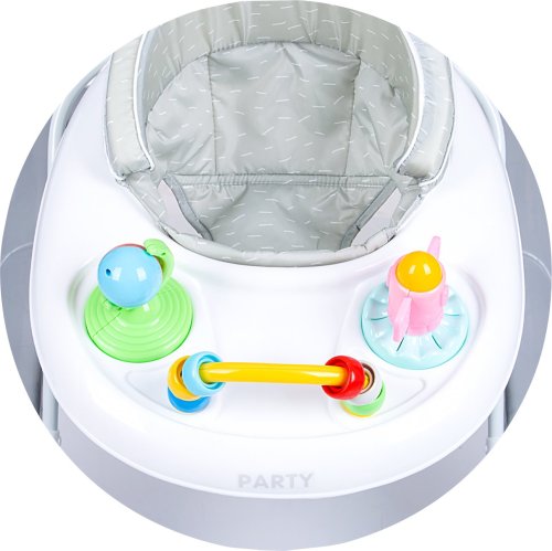 Multifunkčné chodítko je vhodné pre deti s hmotnosťou do 12 kg, ktoré ešte nevedia samé chodiť, ale vedia samostatne sedieť. Chodítko 4v1 Party podporuje pokusy dieťaťa o prvé krôčiky a zlepšuje jeho rovnováhu a koordináciu. Farby a zvuky na pultíku podnecujú kreativitu dieťaťa a rozvíjajú jeho sluchové a zrakové schopnosti.