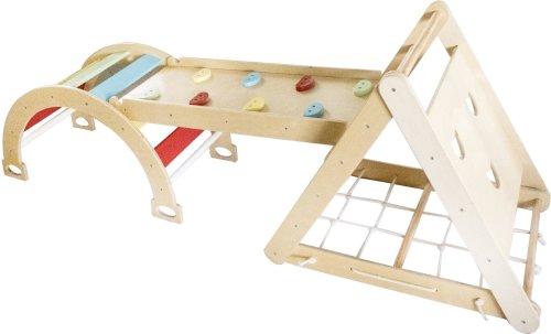 Lezecký trojuholník s lezeckou stenou s tvarovanými úchytmi, lezeckým lanom a lezeckým rebríkom – možno použiť aj ako hrací tunel, Obojstrannú rampu, ktorá môže slúžiť ako šmykľavka alebo lezecká rampa s farebnými úchytmi, Oblúkovú konštrukciu s farebnými schodíkmi.