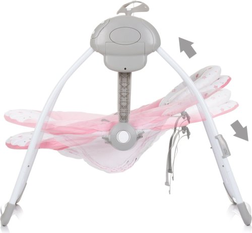 pevný a stabilný kovový rám ľahko sa premiestňuje 5 rýchlostí hojdania časovač hojdania (možnosť zvoliť 15, 35 alebo 45 min) 2 úrovne nastavenia operadla mäkké a odnímateľné polstrovanie (možno prať ručne) mäkké plyšové hračky pre zabavenie dieťaťa rozvíja predstavivosť a motoriku melódie a uspávanky ľahké skladanie diaľkové ovládanie napájania 2 spôsobmi: priloženým napájacím zdrojom alebo 4x C,LR14,1,5V batérie (nie sú súčasťou výrobku) rozmery: 55 x 82 x 64 cm