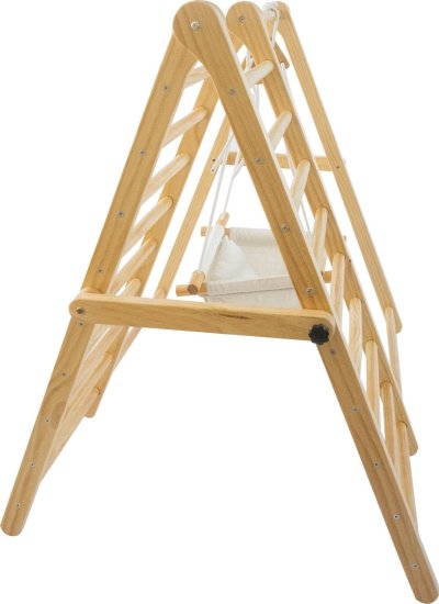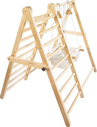 Kompaktný skladací dizajn – pre ľahké uskladnenie, multifunkčné herné vybavenie – spĺňa rôzne potreby detí, rozvíja motorické zručnosti a kreativitu detí, zlepšuje rovnováhu, svalovú silu a vestibulárny systém dieťaťa, zatiaľ čo zaisťuje každodenný pohyb a cvičenie, podnecuje deti k aktivite, odvahe a prekonávaniu nových výziev, vybavené oboch sedadlom, výškovo nastaviteľná hojdačka - vybavená zosilnenými lanami a drevenými háčikmi, vyrobené z kvalitných materiálov - pre dlhodobé používanie, stabilná trojuholníková konštrukcia - zaisťuje pevnú oporu, nastaviteľné gombíky - pre ľahké skladanie, ideálne pre 2-3 batoľatá k spoločnej hre, hladké povrchy a zaoblené nezmontovanom stave. Montáž je nutná podľa priložených pokynov.