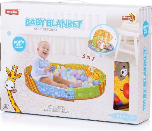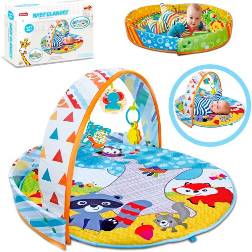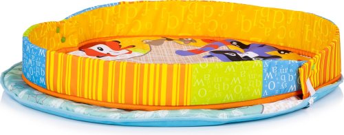 mäkká podložka s veselým dizajnom a žiarivými farbami, ktoré upútajú pozornosť dieťaťa, dva oblúky so zavesenými hračkami – mäkké aj plastové prvky určené na pozorovanie, naťahovanie a dotýkanie, rôzne textúry a tvary – plyšové vankúšiky, hryzátko, šuštiace a hrkajúce prvky, podporuje rozvoj koordináciu ruka - oko, vhodné od narodenia - bezpečné a pohodlné pre hranie na brušku aj v ľahu na chrbte, ľahko sa skladá a prenáša, podporuje aktívne hranie a zvedavosť, pomáha rozvíjať rané zmyslové schopnosti, poskytuje bezpečné a pohodlné prostredie pre hru, rozmery: 80 × 80 × 15 cm.